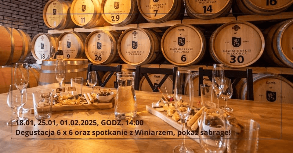 25.01.2025 15:00Klasycznie - mamy dla Was ulubione degustacje 6 x 6 wraz z pokazem sabrage czyli otwieranie wina szablą.