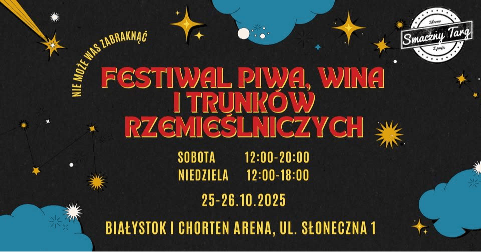 26.10.2025 17:00Na Stadionie Miejskim w Białymstoku miłośnicy napojów kraftowych będą mieli okazję oddać się przyjemności jaką jest próbowanie wyrobów najlepszych piwowarów, winiarzy i cydrowników z naszego kraju, a wszystko to w towarzystwie doskonałych potraw i ludzi zainteresowanych sztuką warzenia.