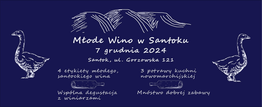 07.12.2024 20:00Tym razem nadarza się unikalna okazja degustacji młodych win z rocznika 2024, w tym naturalnych, powstałych w wyniku spontanicznej fermentacji, bez dodatku siarki. To niesamowita okazja poznać nadchodzący santocki rocznik 2024, odkrywać miejscową kuchnię, unikalną w skali kraju, a także posłuchać opowieści winiarzy o winach, a także z nimi porozmawiać.