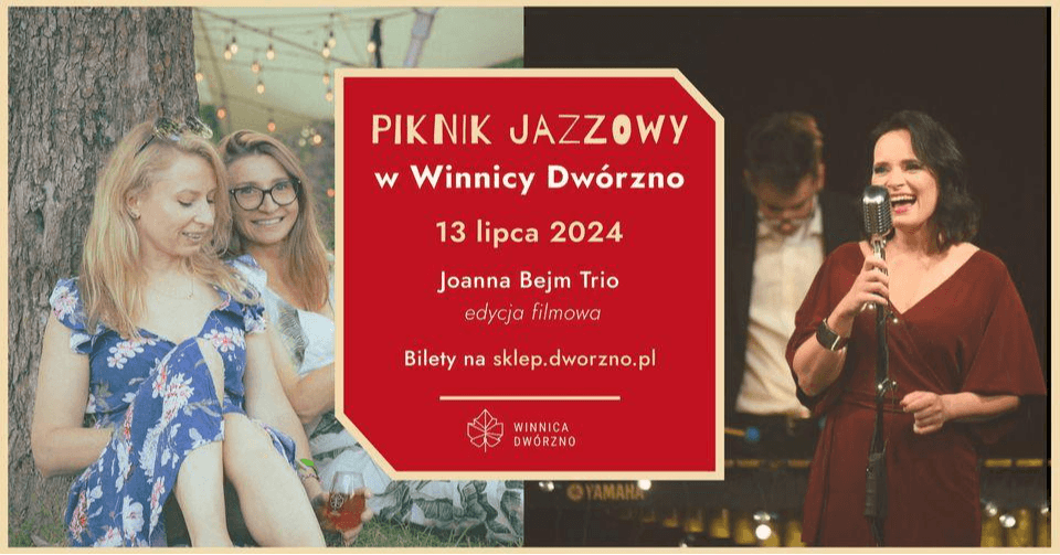Bilety: https://sklep.dworzno.pl/pl/p/Piknik-Jazzowy-13.07-edycja-filmowa-Joanna-Bejm-Trio/190?fbclid=IwZXh0bgNhZW0CMTAAAR1G_EJArTyocj9AVtsA350szHxXg2d3Rzan4uQlstu9EDu7PUzXCSQKAZA_aem_q-5J8nnR8DSqF_l-nlze9A