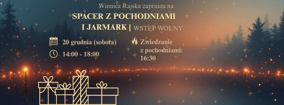 20.12.2025 17:0020 grudnia Winnica Rajska w Myszkowie zamieni się w miejsce pełne blasku, ciepła i świątecznej atmosfery. Zapraszamy na wyjątkowe popołudnie, które potrwa od 14:00 do 18:00, podczas którego będzie można zwolnić, odetchnąć i zanurzyć się w przedświątecznym klimacie w otoczeniu winnych krzewów i ognia.