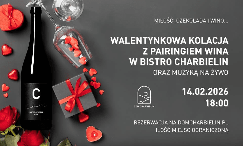 Walentynkowa kolacja z pairingiem wina w Bistro Charbielin • 14 lutego • godz. 18:00