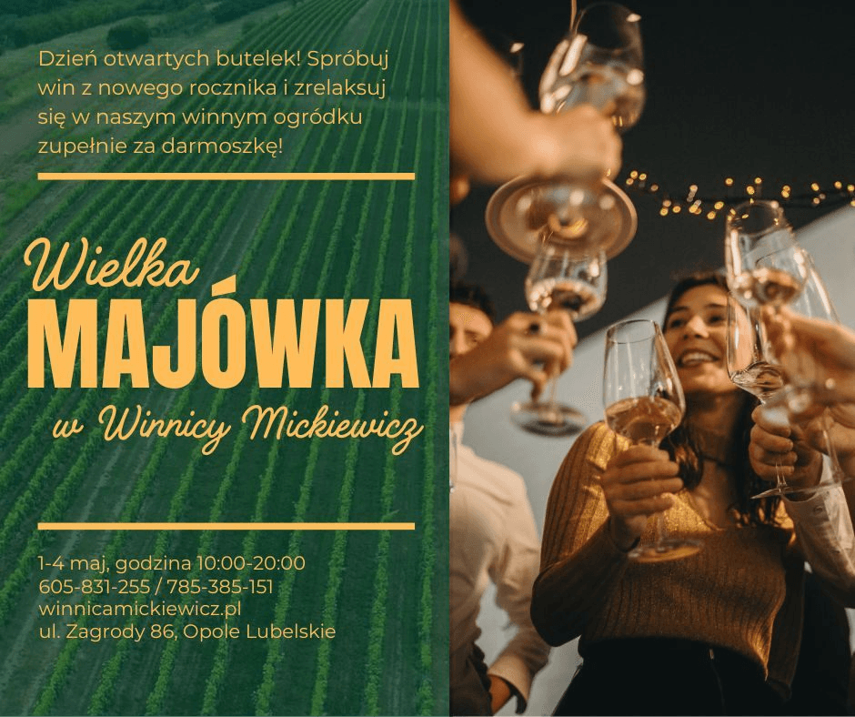 04.05.2025 18:00Wielka MAJÓWKA w Winnicy Mickiewicz! DZIEŃ OTWARTYCH BUTELEK