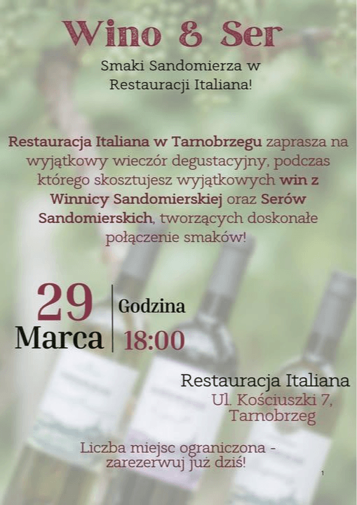29.03.2025 19:00Wino i ser w restauracji Italiana w Tarnobrzegu