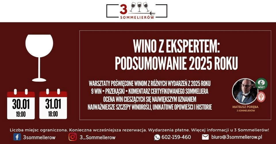 Wyjątkowy wieczór poświęcony podsumowaniu 2025 roku w wydarzeniach związanych z degustacjami wina. Coroczna tradycja, podczas której serwujemy wyselekcjonowane wina, cieszące się szczególnym uznaniem w 2025 roku. Warsztaty z elementami kalibracji, profesjonalna prelekcja z anegdotami i historią – wszystko z zachowaniem balansu między wiedzą akademicką a rozrywką.